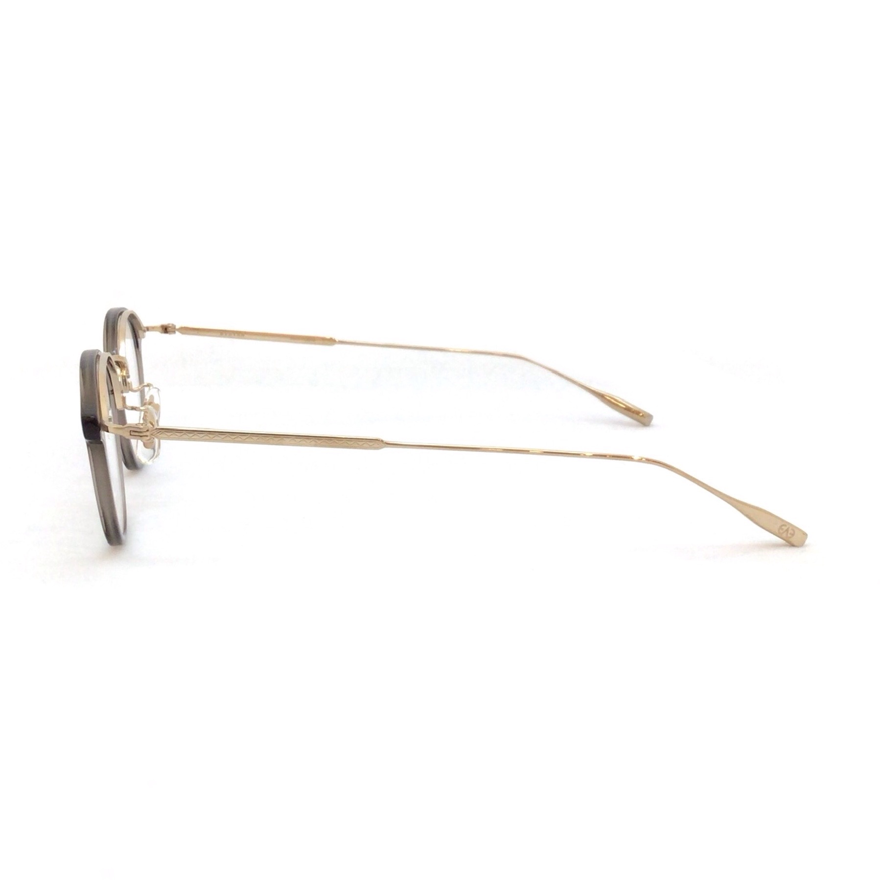 小さめボストンタイプのコンビネーションフレームです。 シンプルでミニマルな雰囲気のモデルです。 トップバーにはミル打ち模様が、テンプルには彫金模様が施されています。