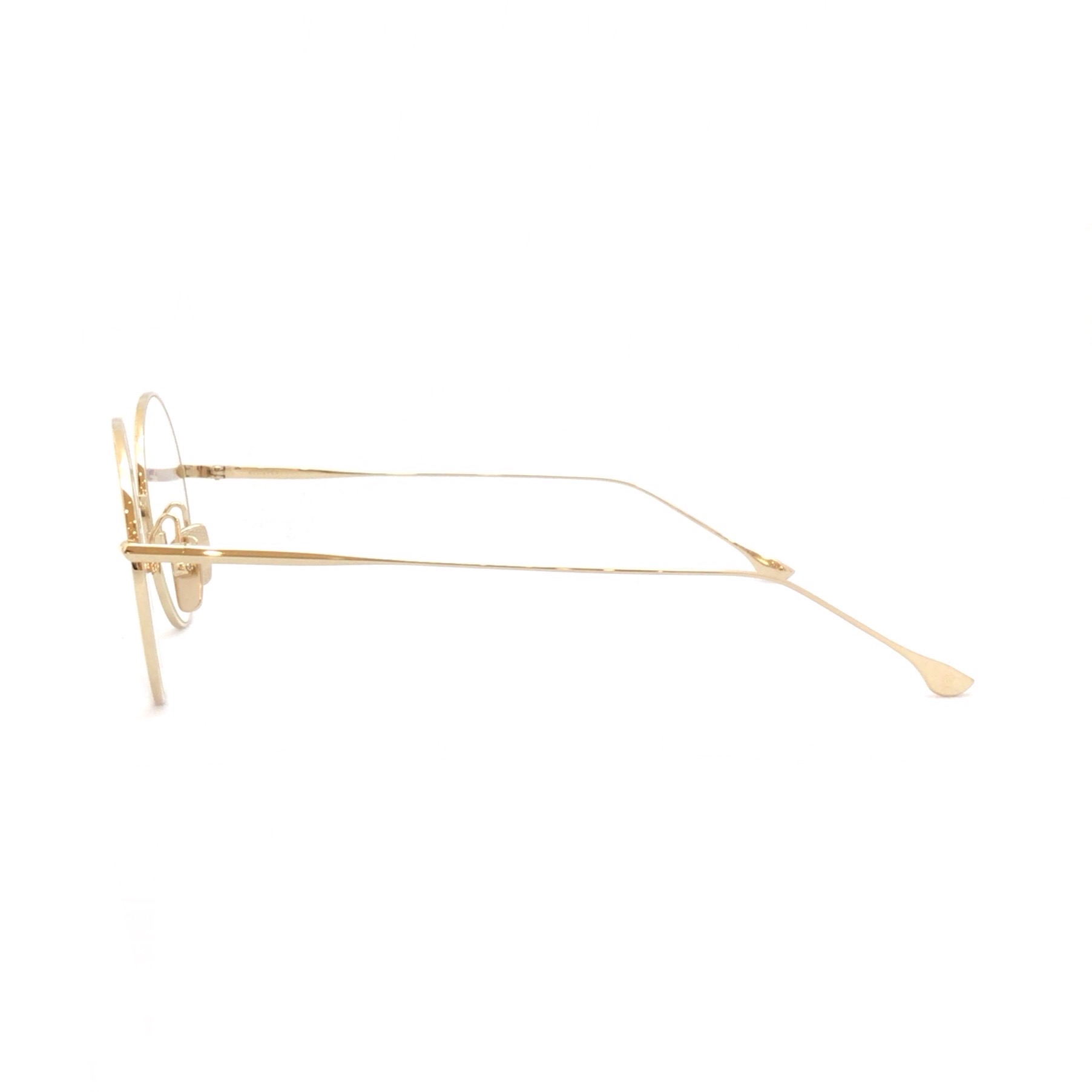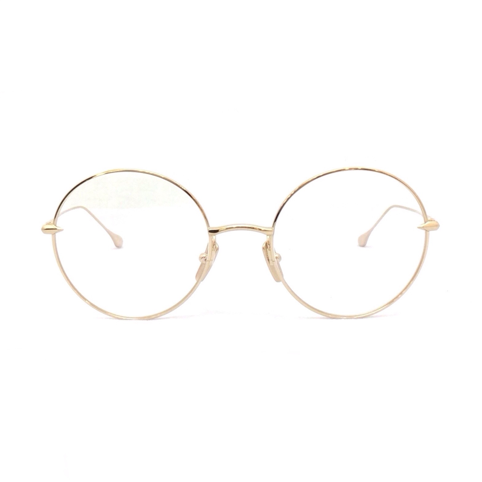 大きなラウンドタイプのオールチタンのフレームです。 シンプルながら優美で洗練された雰囲気のモデルです。 テンプルは槍をイメージしたデザインで、ノーズパッドにはダイヤモンドカットが施されています。