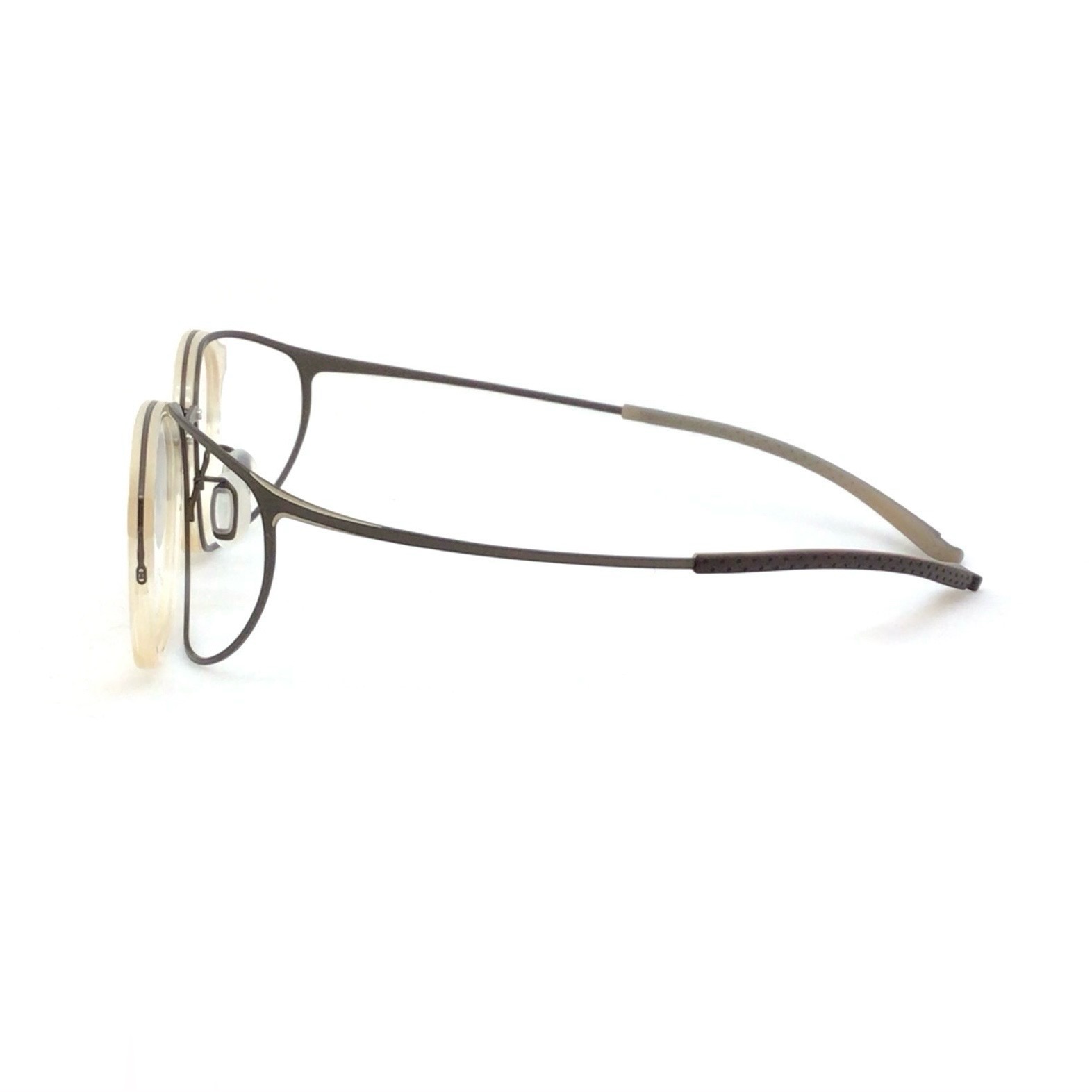 ヒンジレス構造が採用されたテンプルはツートンカラーで、