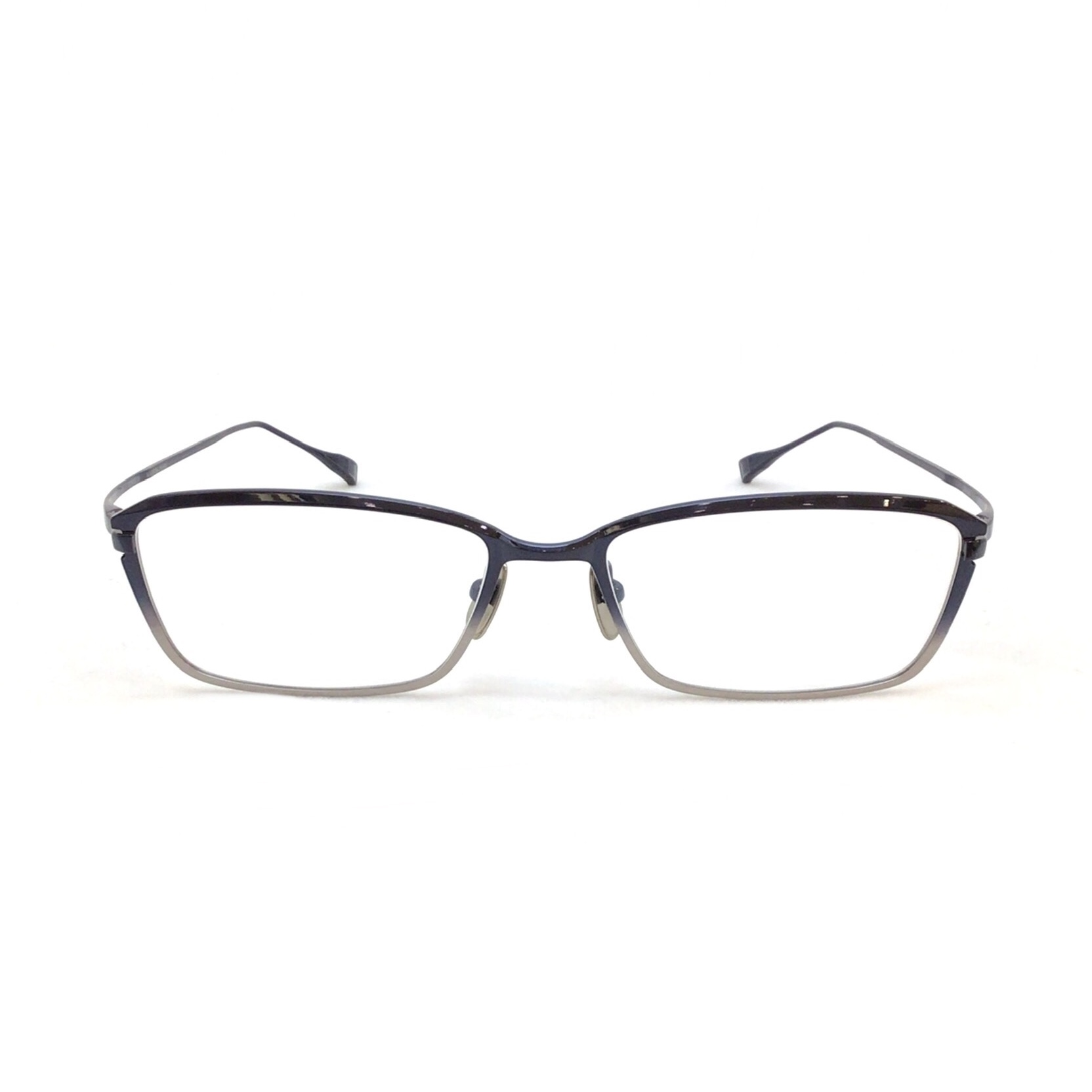 横幅のあるスクエアタイプのフレームです。 フレーム上部に施された面カットがシャープで知的な印象をプラスしています。 熟練された職人の手作業により染色されたグラデーションが美しく、光の加減で多彩な表情を見せてくれます。