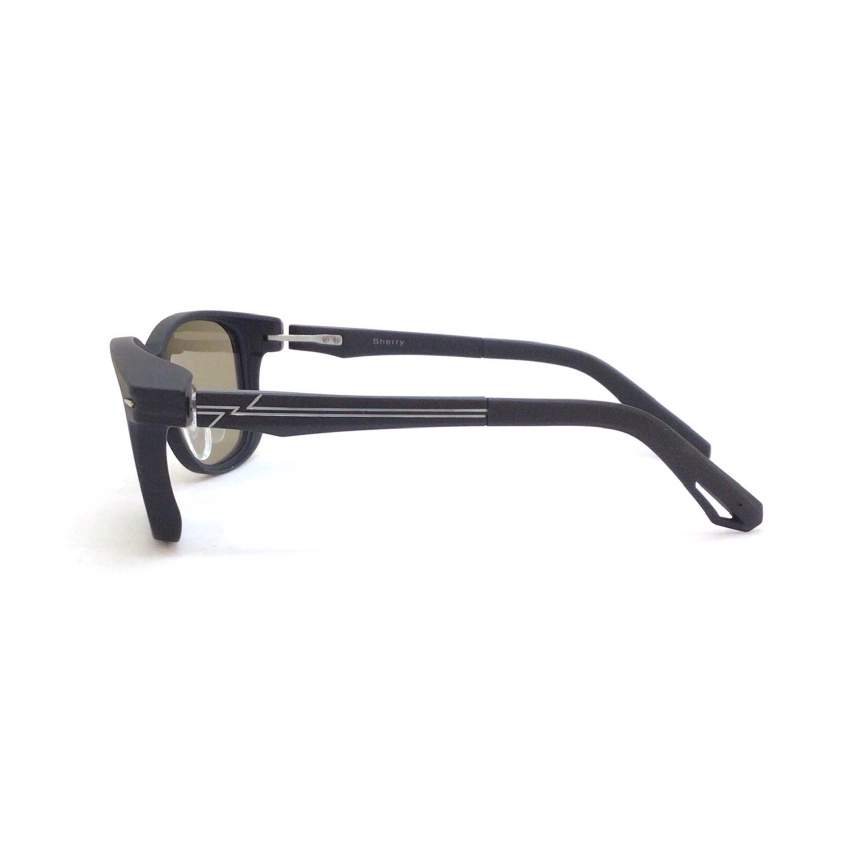 立体的な形状のウェリントンタイプのサングラスです。 顔に沿うようなラインの遮光性とナチュラルなかけ心地のモデルです。 フロントの飾りの違いで左右で異なる表情を見せてくれるのも魅力です。