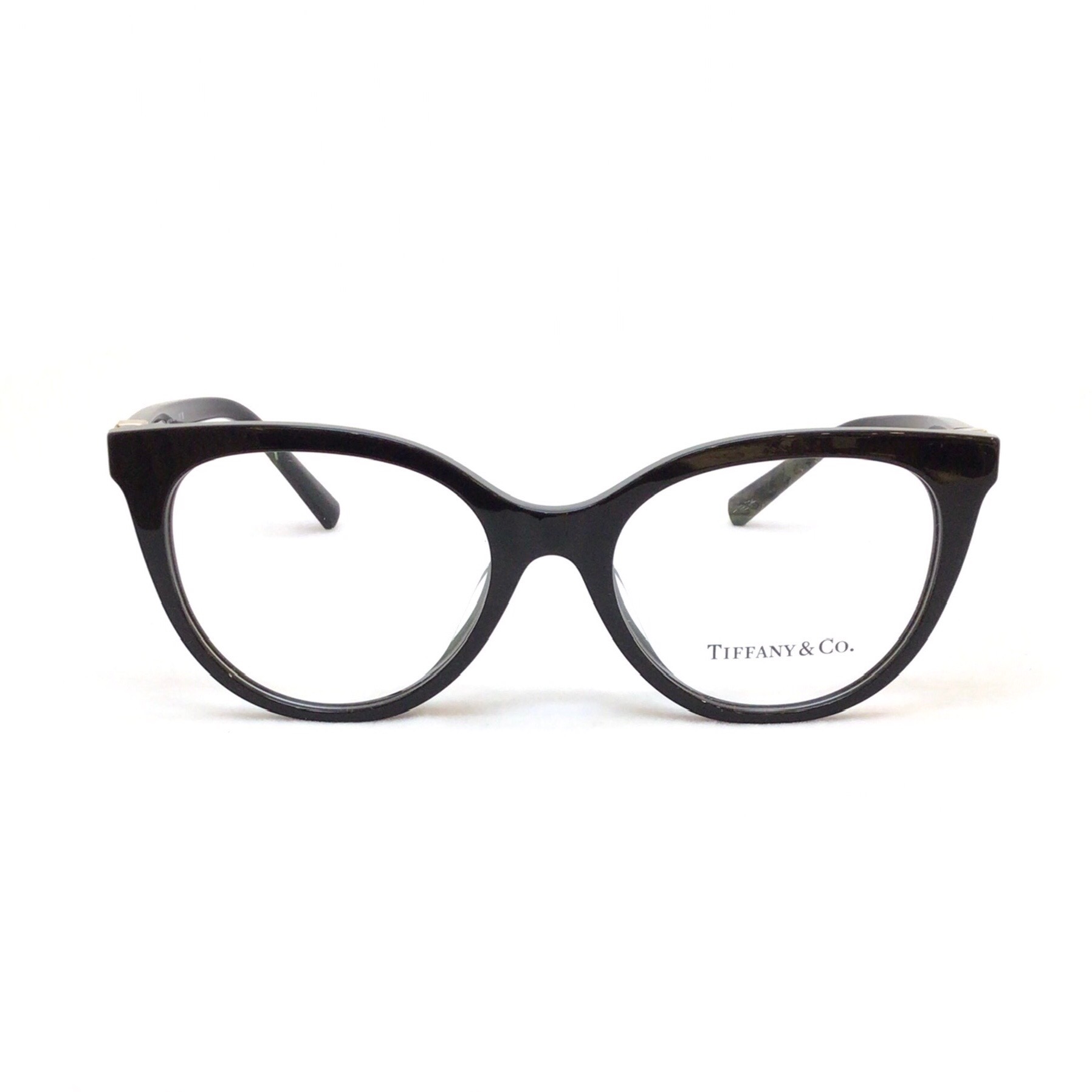 細身で上品なキャットアイタイプのフレームです。 ゴールドの「ティファニーT」モチーフがアクセントのデザインです。 テンプルエンドにはさりげなくティファニーブルーが施されています。