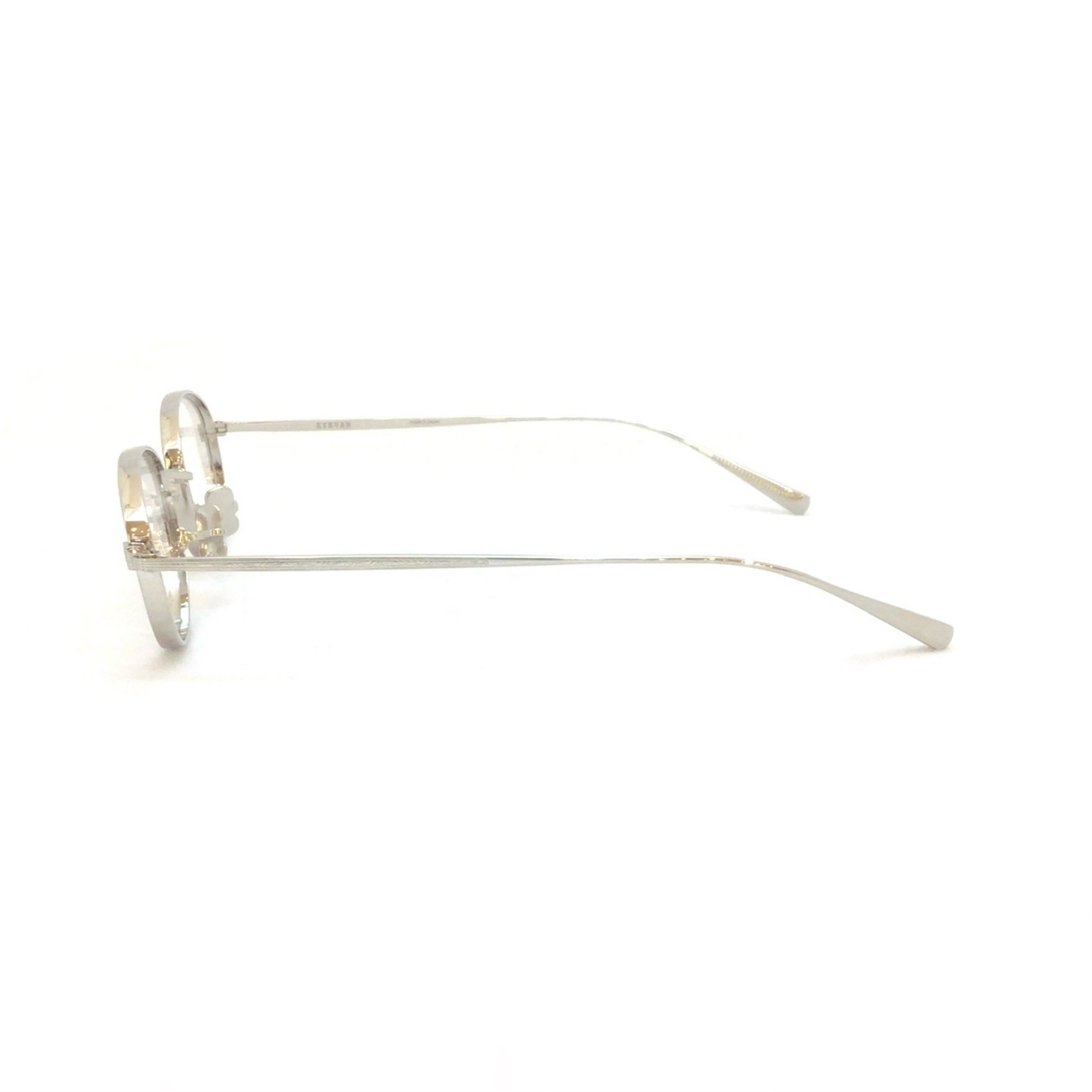 厚みのあるリムが特長の小さめレンズサイズのフレームです。 ヨロイ、テンプル、テンプルエンドには繊細で美しい彫金模様が施された、 シンプルながらも丁寧に作りこまれたモデルです。