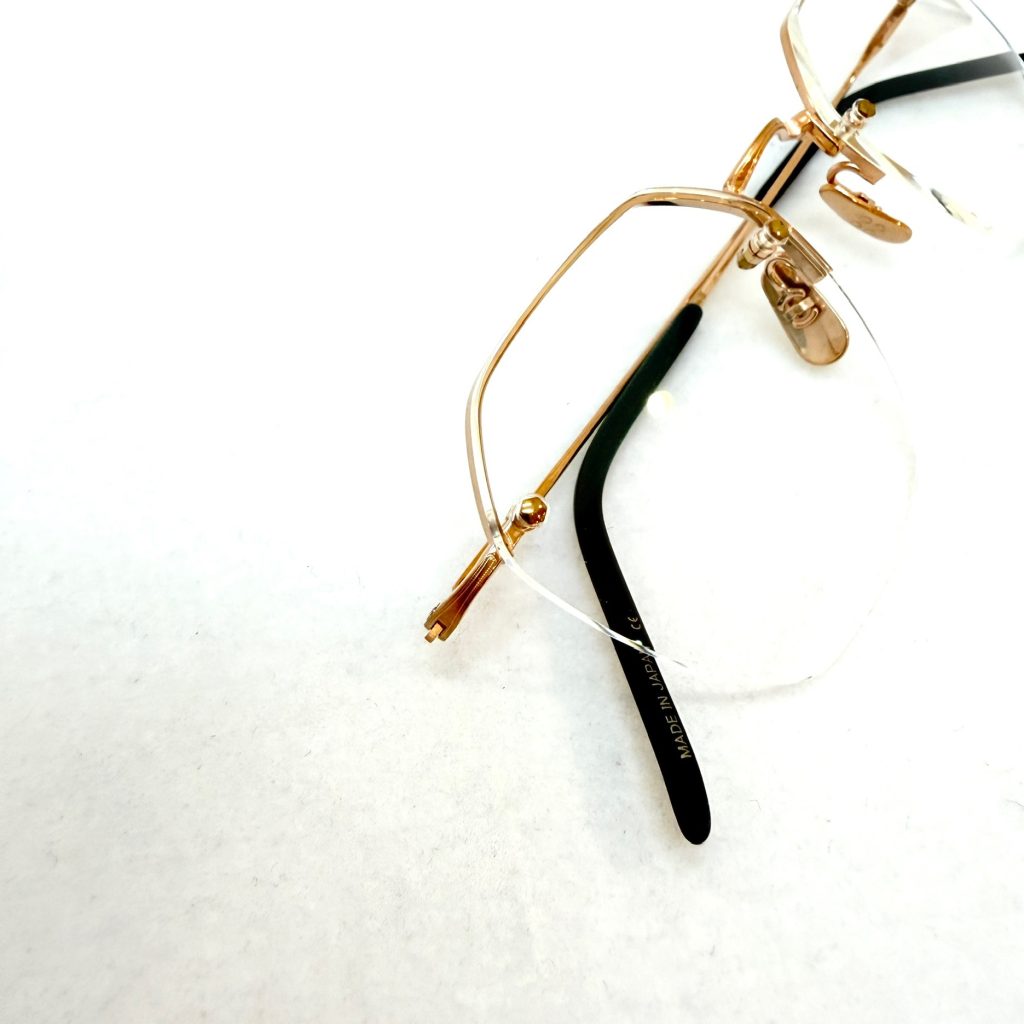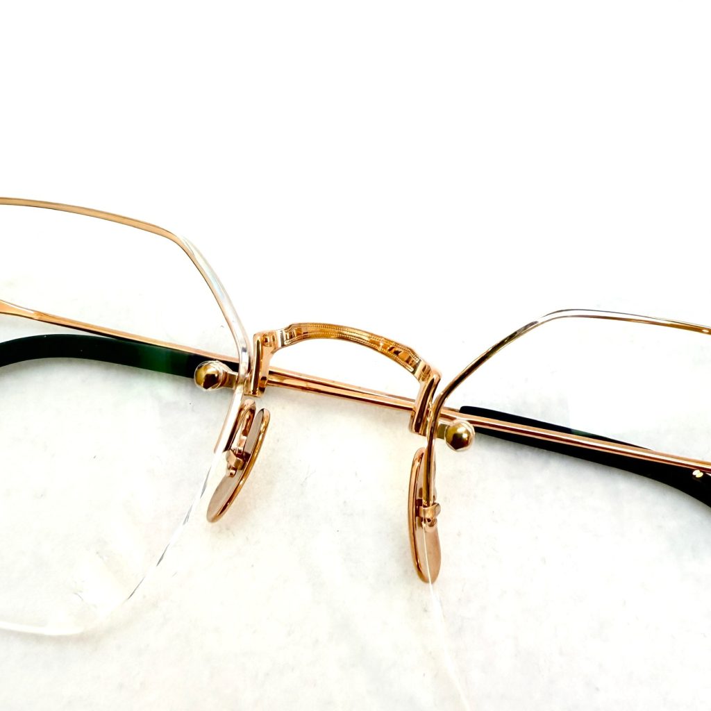 ブリッジ、ヨロイ、テンプルにはミル打ち模様が施されたクラシカルでエレガントな雰囲気のモデルです。